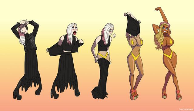 This sequence is really intriguing. I always look forward to see what kind of subtle changes are in store and this one is going to be full of surprises. A cool twist from your earlier sequences. I really like how things seem to be getting darker, including her hair, makeup and even her expression. Already a much different look from her innocent white gown. Cool dress design, too!