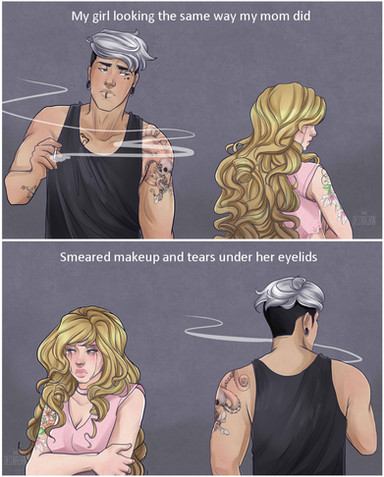 And thank you again haha. Yeah again it's not really staple cookie cutter character relationship, I try to make them realistic?? They cheat on each other a lot and it's just a relationship built on lies and decieving each other. But then to everybody else they look like so good together. Two totally hot people mingling and having sex all the time and ugh, sounds perfect to their friends I suppose if that makes sense?