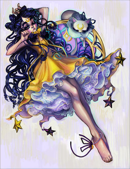 I love that she kept her Details like the moon Emblems and her ribbon in the neck. Thanks to the silk jacket not to much Skin is shown