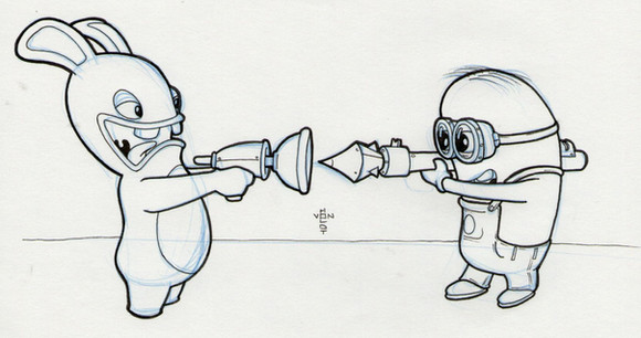 While I was in France I noticed that the Raving Rabbids are still pretty popular in France. And then I got an idea to have the Minions from Despicable Me to fight these things. They are pretty same when you think about it.Related content