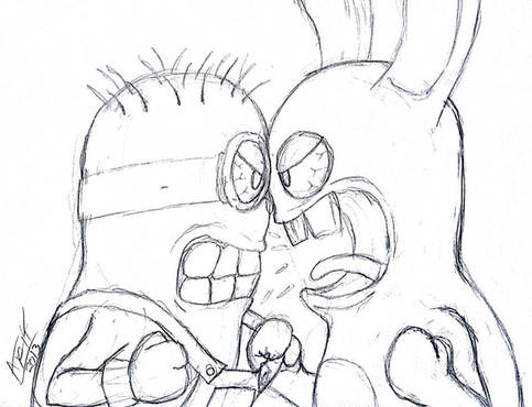 #cartoons #fanart #fight #games #minions #rayman #watercolor #ravingrabbits #crossover #fighting #gamefanart #raymanfanart #traditionalart #ravingrabbids #despicableme #crossoverfanart #despicablememinion