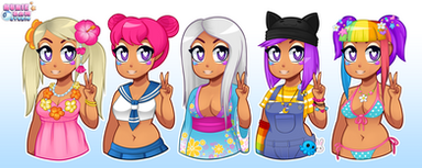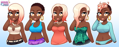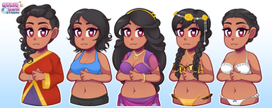 They can be in any of the clothing you find in their sta/sh or nude. whichevery you like Β
