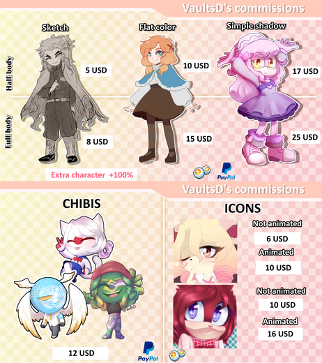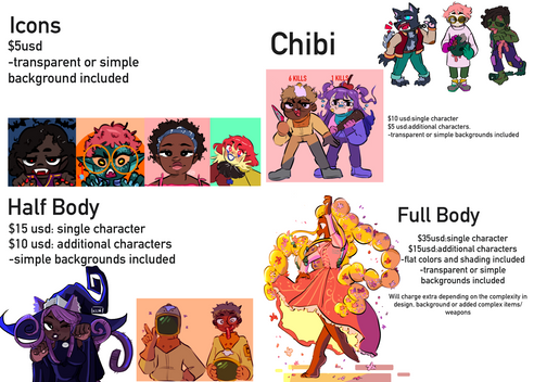 hey :0 im thinking of commissioning you again sometime and i was wondering how much extra are multiple characters? :3c
