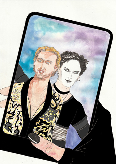 ...if you dare. A family portrait based on a story of a friend of mine. Quality of scanning - not too good. The bunny in the corner is my friend's actual pet, by the way.P. S. The reason it doesn't look too good is that the predominant color in this picture is black, and I had no black paint at the time