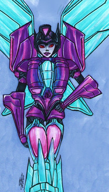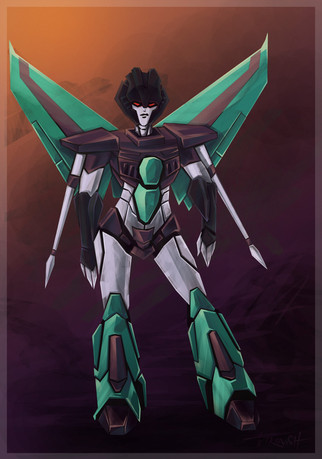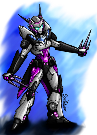 The sardonic Seeker from animated, drawn in the style of transformers Prime.This is my first fully digital piece as I usually colour scanned pen and ink line art rather than sketch directly into the computer.