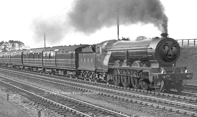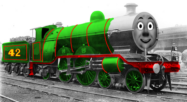 for those who are wondering...in his original concept sketches, the Good Rev. Awdry had Henry set down for an Atlantic 4-4-2 type locomotive,possibly an LNER C1, over the 4-6-0 "Black Five" we know and love today. i simply did this design when i came across a picture of a very fitting engine while browsing the LNER archives.