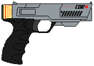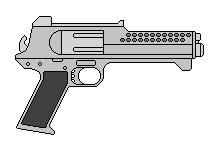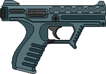 Refinement of Soviet laser techology, it is using magnetic system to compress the beam and add more penetration power to it. The pistol was developed by Optron Research Institute in Orenburg, and mass produced in LOMO factory in Leningrad under the name of LMP-1, dubbed "the Lamp" by the Soviet Army soldiers. It was put to good use when Soviet army fought with China in late 2070s. It is based upon proved scheme of using pulsed semi-conductor laser emitter for it's main discharge barrel, however, it's efficiency is greately improved, and the beam is then compressed by electromagnetic coils to add more focusing and penetration power to it. Comes with bult-in laser target designator, emitting a hamless (low power), but visible continuos laser beam.