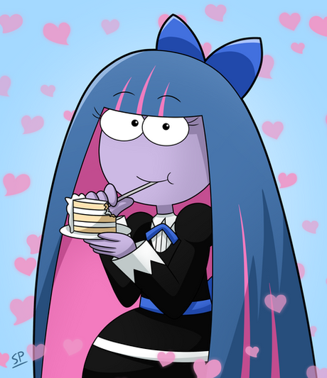 Been watching Panty and Stocking lately, so here's a drawing of the certain someone who loves the sweets. ^^Panty and Stocking with GarterbeltΒ Β© Gainax