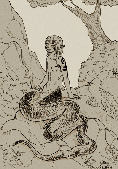 A grumpy naga guy with a kinked tail I doodled last night.Related content