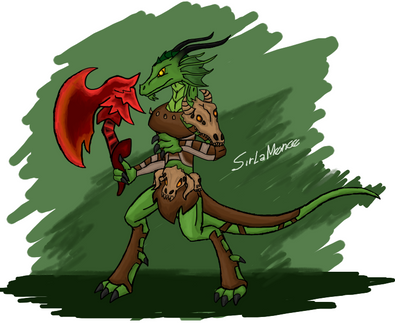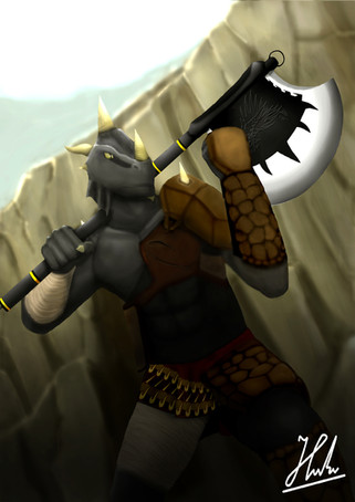 #armour #attack #axe #barbarian #belt #buff #chest #dnd #dragon #dragonborn #dungeonsanddragons #emblem #female #gem #gemstone #horns #lizard #lizardfolk #loincloth #muscle #originalcharacter #ornate #player #power #shirtless #strap #strike #weapon #spinopsys