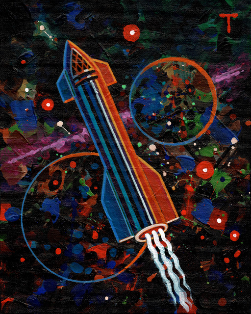 My prompt was: what makes me exited about the future of spaceflight? Imagine a spaceport where rockets launch so often that the moment one lands, the next lifts off. Such cadence would rival a freaking space elevator! Maybe buy a poster to have a part of that future on your wall!www.perigeeaero.com/shop/p/theβ¦