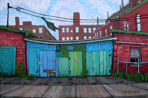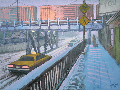 On the Don Valley bike path, in Toronto.This is an older painting, done in 1997 I think. Acrylic on canvas.