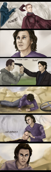 Задумка - да в любой такой игре есть такая сцена XD Так что я била наверняка. Вот они вдвоем, спиной к спине, их окружили, атмосфера накаляется,в се ждут, у кого первого не выдержат нервы... Вспышка молнии - и понеслась. Логично? XD Сама на этом играю.