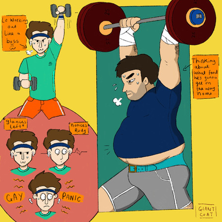 Trying on a friends clothes and there sweat is contaminating me and making me into a clone of them!oh no. what will I do with this lovely gut and buff body
