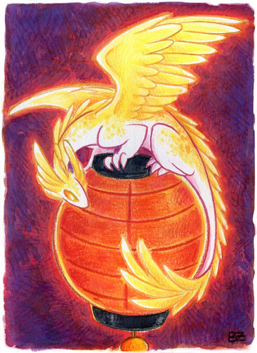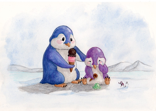 I'm fairly pleased with this one, since it was a new technique (coloring without lines, oh my!), and I think it came out pretty well, though I'd have liked their expressions to be a little clearer, as they are in the sketch (here: [link] ). I do really like the pink frosting on the cake. ^_^ And the little bamboo candles, hee hee.
