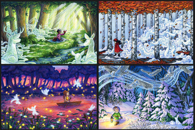 #birds #deer #fantasy #forest #ghosts #nature #river #spirits #spring #sunlight #trees #water