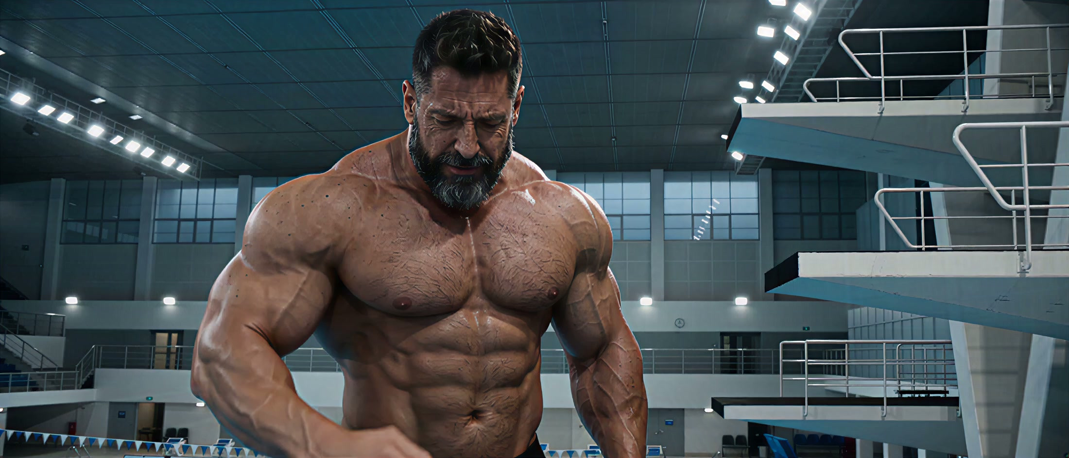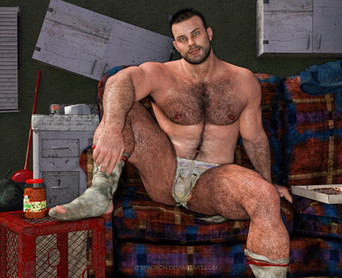 Just an animal. Woo, what a nice hairy fella. Love how his thigh hairs cross like bridges underneath and his pubes expand outward from the cloth.