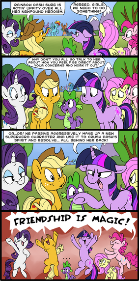Panel 3: Twilight, you have nothing to be scared of here. will protect you from all the thoughtless haters!
