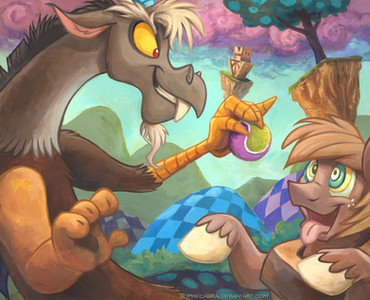 The most unlikely and yet adorable of friends. But seriously, Fluttershy, stop looking at him like that. No, really. He's going to get diabetes and turn evil again.Collaboration between myself and the incomparable