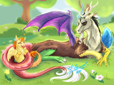 Aaaww!!! I love these two!!! They're so cute!!! I'm really glad Fluttershy reformed Discord!!!