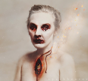 I do agree with one of the other comments, this is some wicked photoshop skills, I wish I could do this. And since I adore horror photos this just fitted my taste perfectly, it actually reminds me slighlty of 28 days later zombie, or someone about to turn into a zombie. One of the eyes red and that dangerous look and how your lip is shaped adding even more to that dangerous look effect, and with your other eye that's still blue you manage to get out that slighlty humanity from making it full zombie. X333 Sorry for random long comment.