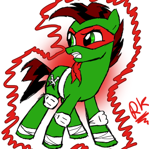 I looked at the other TMNPony. It's funny that they're all green except for their cutie marks and their look. I must say you got Raph's eyes captured in this one ^^