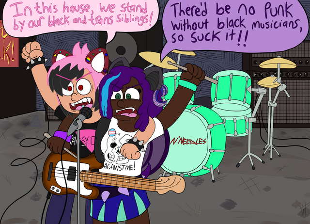 Some strong female characters. Sage plays drums in Pins N' Needles, while Rina is the guitarist.Related content