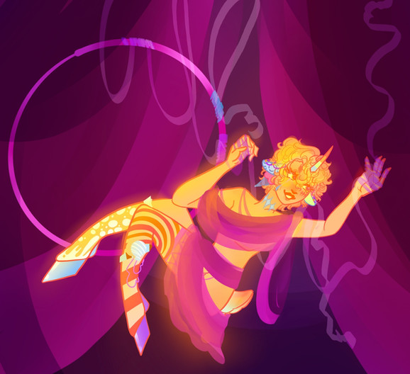Character: Jupiter.Jupiter preforms often, whether it's for their friends or an audience. Their tattoo's have a story... but boy is it hard to draw them.