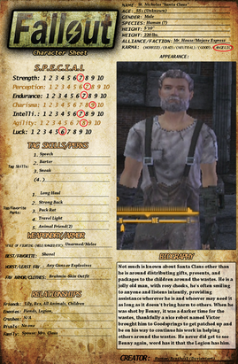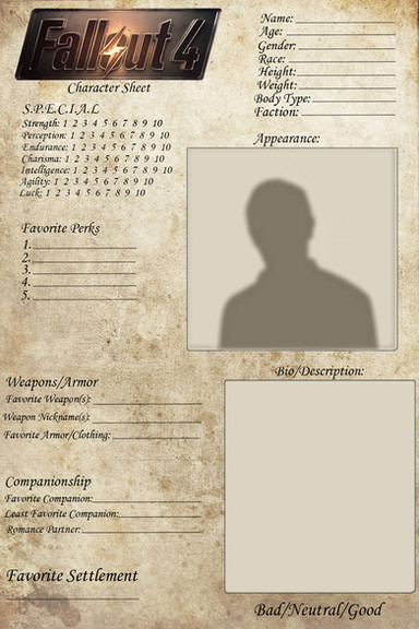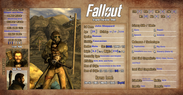 Every once in a while, I see that someone made a background sheet for their Fallout OC. So, I was thinking of making one for my Fallout OC on Fallout 4.This is one is not of my version of the Sole Survivor, but an NPC I made up.