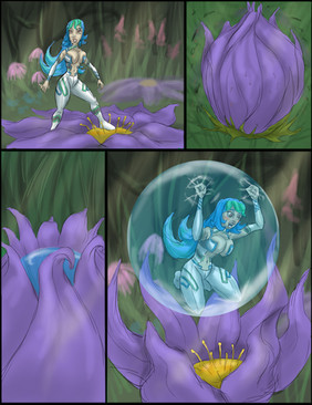 Clever storyline. I like the concept of her walking along and suddenly finding her feet stuck fast to the ground. As she struggles and strains to get free, the trap is sprung and now she's hopelessly encased in the slime girl. Nice, strong, sexy legs on the woman getting stuck and trapped, and love how you changed her facial expression from annoyed in the first frame to shocked in the second to bewildered and desperate as she struggles to break free of her slimy prison.