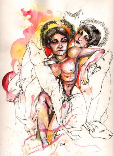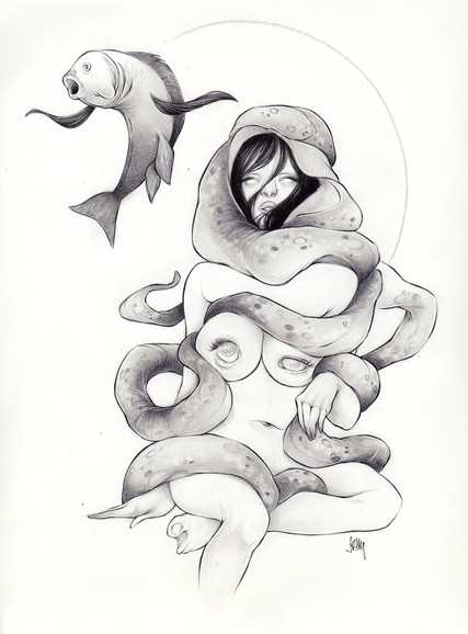 #bdsm #bondage #breasts #dominance #fish #fisherman #fishing #food #fox #foxgirl #hunger #illustration #kitsune #morning #rabies #sexuality