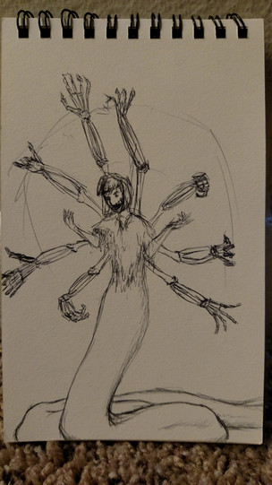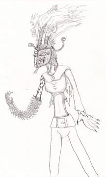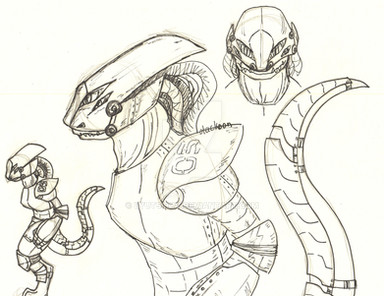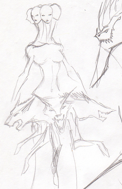 Tails were drawn and left in pencil because I wasn't sure if I liked them or not-- didn't like them being so permanent.Her arms can be removed and replaced with various weapons. It is awesome.