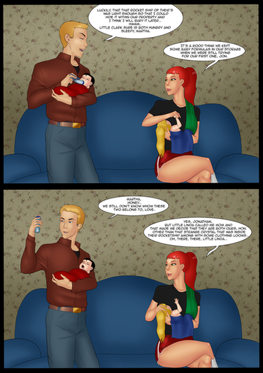 Sequel to 'Suddenly, a baby'. Rogue DOES know when to throw in the towel and accept backup help, contrary to popular belief.Lesson learned from this one: I do NOT like perspective drawing without a model!! Appx 10 hours in ProCreate for iPad, words and bubbles added in Photoshop CS3.