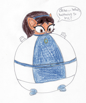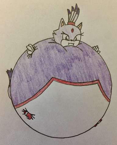 Blaze the Cat had so much fruit punch, she ended up inflated from all the drinking.