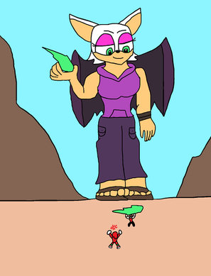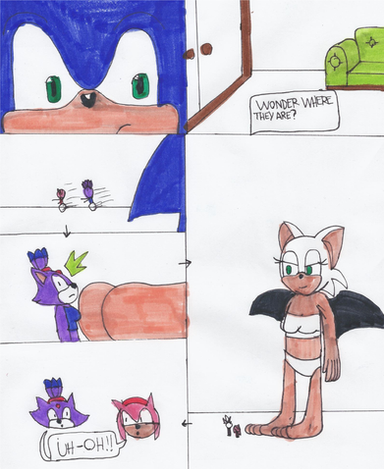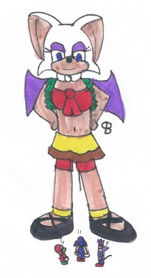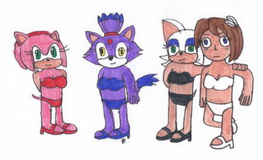 1/2 of point commission.Rouge Mii looks down at Amy, Blaze and Wave, as a giant (which she is).