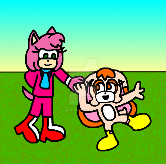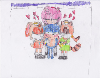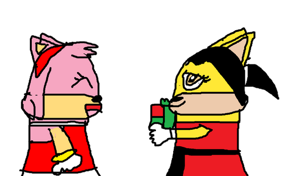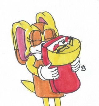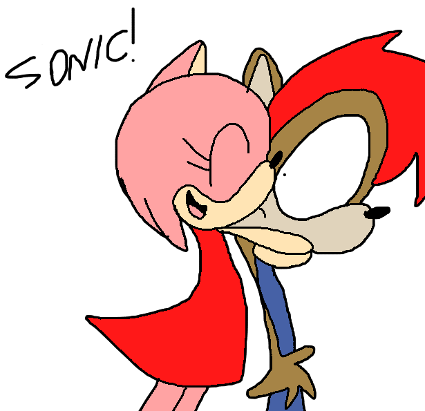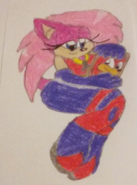Amy Rose is hugging a flattened disked Stephanie.