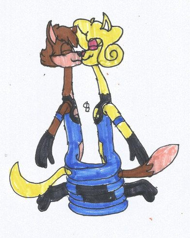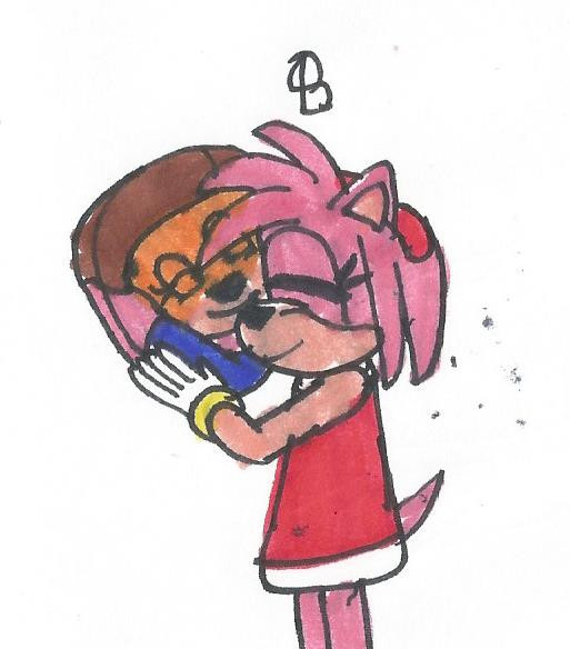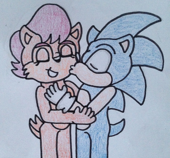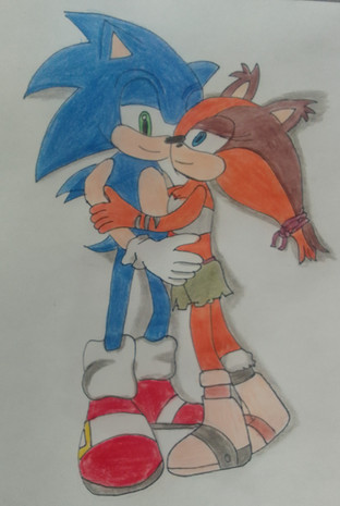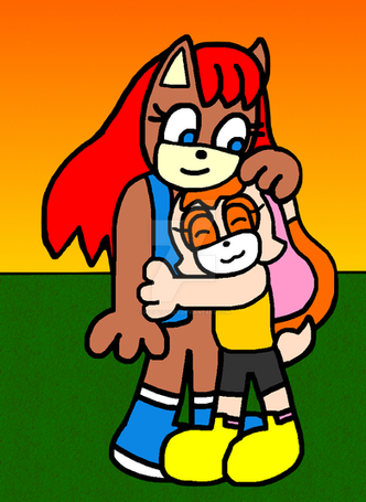 Sally Acorn is giving Sticks a hug. Based on a scene from Archie Sonic/ Megaman Crossover saga.