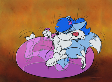 1/2 point commission by www.deviantart.com/artviewer36Elastic Sally inflates her rear and bounce around like a Space Hopper and having fun.......