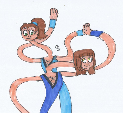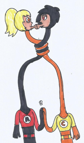 Plastic Rick and Plastic Vicki both stretch around each other.