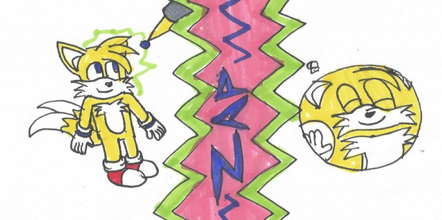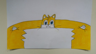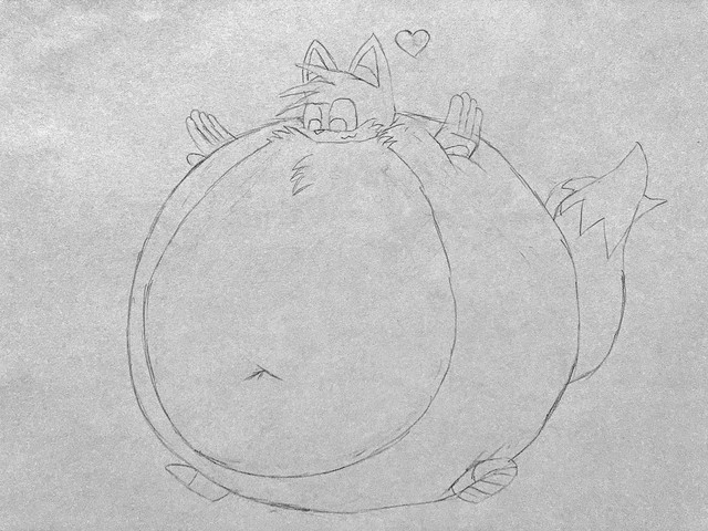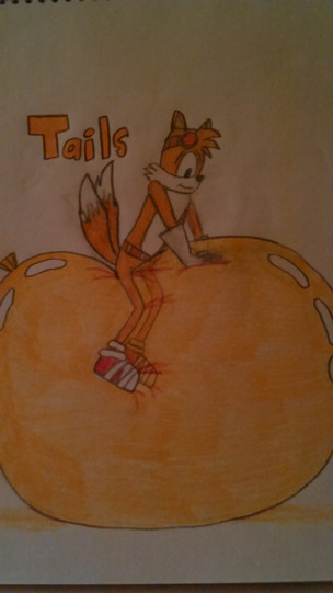 Tails, has eaten some purple potatoes and somehow the potatoes caused him to inflate like a balloon.