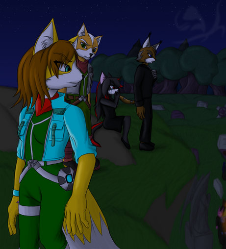 Fox slid down the chasm and fell hard on the ground "OHF!" he rolled to his side and stood still. He then got to his knees breathing heavily. He then stood up and looked at his surroundings. The new room appeared to be a large chamber. Odd pipe like structures twisted and curved through out the room, and strange orbs hovered over the floor. Fox slowly walked forward trying to find a way out "The hangar must be here somewhere." he said to himself. He looked at all the strange devices. "So odd. What would these be fore." he saw some steps and went up them. He placed his hand on the side, suddenly a noise was heard. "What?" he turned realizing what he had done. He activated something. The pipes began to whine, and move slowly. The orbs began to glow. Suddenly light was now available. "Great, light!" he smiled but then frowned. "DAMN! Then that means!" he heard a more unsettling noise. "..!" he ran and hid behind one of the pillars. Suddenly the lights burst and it was now complete darkness. The only light left was one orb. Fox's back hugged the wall as he struggled to slow his breathing and remain calm. A voice chilled in the dark.
