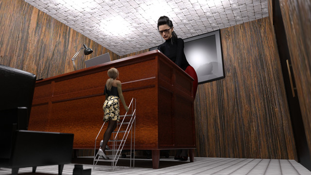 I like the way you gave her a realistic hip shape.Β Love the shoe dangle, just in general but also in this scene.Β It gives the impression of her listening out of politeness while really not internalizing a word of whatever he's saying, and in the end it will be whatever she wants anyway.