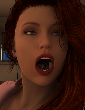 I like the idea of using a shrunken person as a toothbrush by a woman, but it's not clear if it's a male. Yes, it's not easy to represent an image where a shrunken man is brushed against woman's teeth and show his sex, but in that way it's not clear if the idea is of a male serving a woman. I like women smiles so I appreciate the idea for his originalty since I don't remember having seen something like it anywhere.