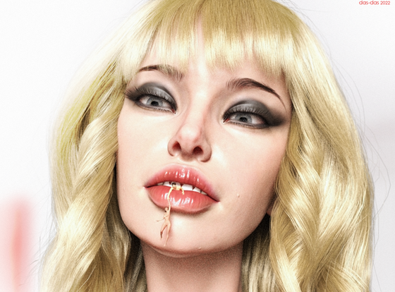 Speaking of the quality level from a technical point of view it's really good: I must say that the details of her skin are excellent. Only that foam should maybe mixed with a little of blood; but I understand your choice because you did not mean to represent a kind of hard-vore picture even if a little of blood could be present.