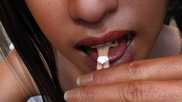 Very nice. I love the dispassionate look on the woman's face as she opens wide, ready to send the tiny, defeated man into the abyss of her throat. What's the story here, if you don't mind me asking? The way the woman and the man are dressed, they both appear to be business professionals. A lunch meeting gone wrong, perhaps?