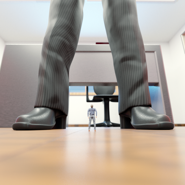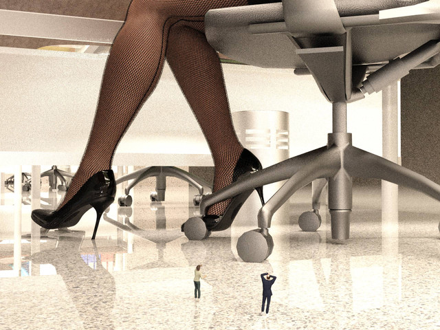 "Well, the tables have turned somewhat during the prior decade, haven't they sir? You were caught, fired, shrunken, and now you're sentenced to be my personal assistant. I understand that the new company policy is to refer to you as "Manlet", so that is what I'll call you from now on, and that is how you shall be treated. I know you're understandably embarrassed and thoroughly intimidated, but honestly, watching you trying to gain a tiny bit of height by rising up on your little tippy-toes just looks ridiculous. It isn't going to help you or your pathetic situation in the slightest."