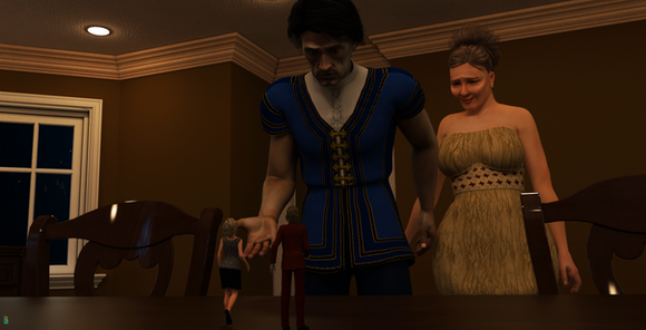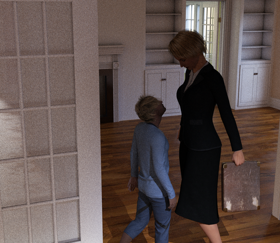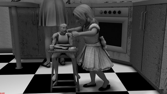 I like the assortment of alcohol on the table, I assume he's being scolded great render, could you do one with him and the dollhouse.