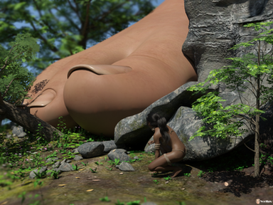 Very nice, the shading is very good. The transition of the small visitor looking up is very good. The wonder and surprise is done well. Also a mild bit of confusion of looking up at the inhabitants of this forest is done very well. The transition of the giant inhabitants legs has a real feel to it. All in all the wonder and confusion of the small visitor who came into this forest and getting a interesting and strange greeting of the true inhabitants. It conveys a strange wonder and awe of a different type of discovery in the stumbling into the wrong place.