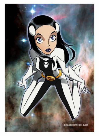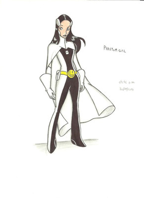 Everything about this version of Phantom Girl is a WIN! The Pacman symbol, the hair clips, those awesome boots, the see through Space Ghost esque cape, another fantastic 30th century design!