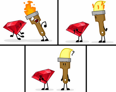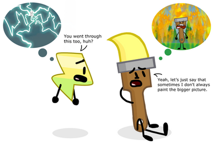 Test Tube: It's pretty obvious of what's going on! *points to Paintbrush and then at Fan*